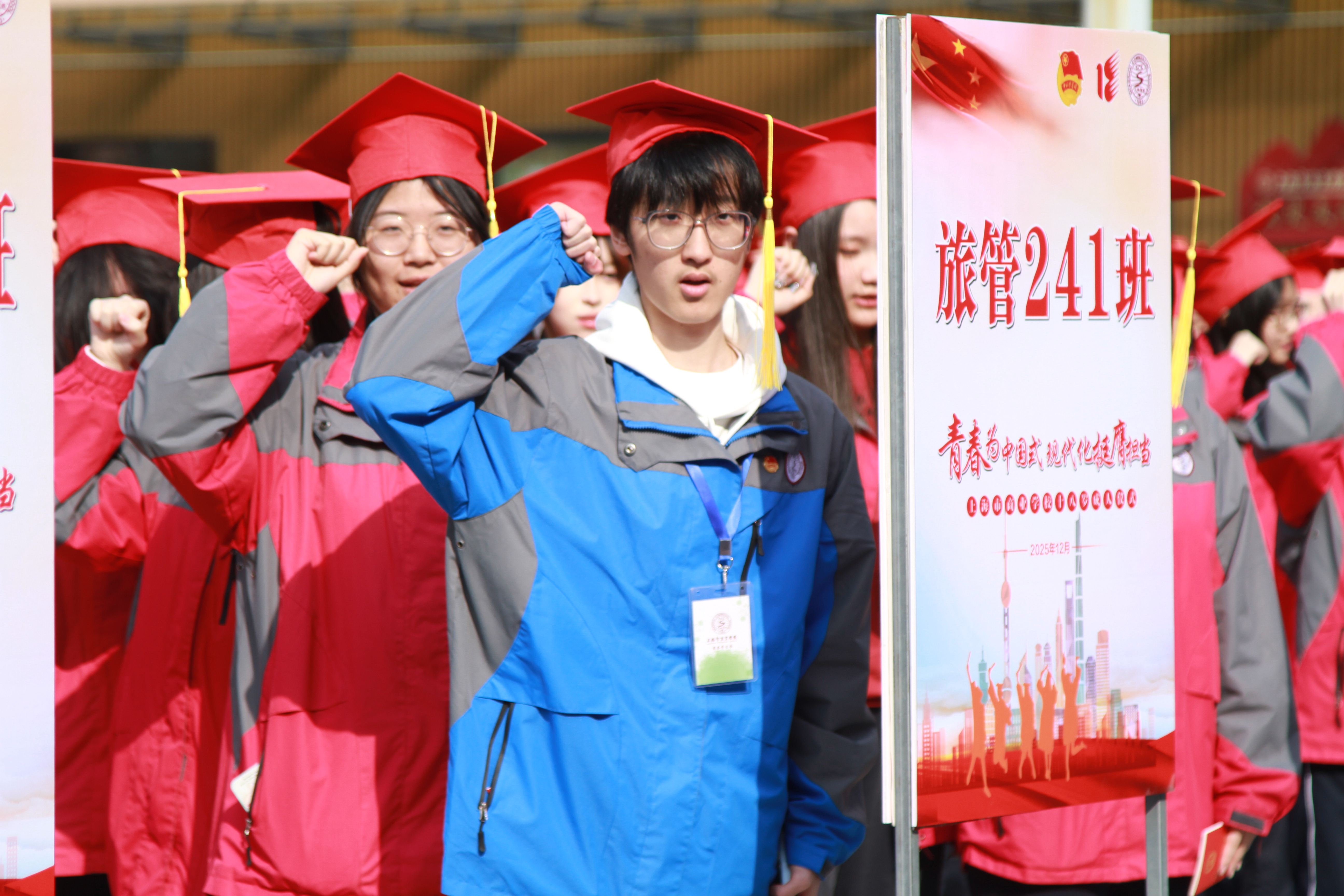 今年是中国人民抗日战争暨世界反法西斯战争胜利80周年。在特殊的历史坐标下,校学生处、团委于12月2日通过开展以“青春为中国式现代化挺膺担当”为主题的24级学生十八岁成人仪式,引导商校学子将个人成长与国家命运紧密相连,继承和弘扬伟大的爱国主义精神与抗战精神,深化爱国情怀,使我校学子感悟作为一名中华人民共和国公民所应当拥有的权利、应承担的义务以及相应的社会责任,在推进强国建设、民族复兴伟业中展现青春作为、彰显青春风采、贡献青春力量,奋力书写为中国式现代化挺膺担当的青春篇章。 原校长、原关工委常务副主任张大成,校党委副书记、副校长鞠文炜,学生处相关领导、各教学部书记、24级全体学生班主任和家长代表共同见证着这一重要时刻。 随着庄重肃穆的国歌响起, 24级全体学生头戴成人帽,手持《宪法》整齐有序地列队唱响国歌。仪式在学生代表配乐朗诵的《十八而至,薪火相传》正式拉开了18岁成人礼的帷幕。 仪式伊始,校党委副书记、副校长鞠文炜代表学校致辞。鞠校长对24级步入十八岁的商校学子致以诚挚祝贺,并表示18岁将是人生新起点,应当敢于有梦,勇于追梦,勤于圆梦,每一位商校青年都应深刻理解并践行习近平新时代中国特色社会主义思想,坚持中国共产党的领导,积极参与到祖国的建设和发展中去,他祝愿同学们要以成年之姿书写青春担当,不负韶华与时代重托。 “学会感恩、宽容与欣赏,珍视生活中的每一份温暖,珍视每一段际遇给予你们的启迪。”这是由旅管241班的沈晨家长代表全体学生家长传递的殷切寄语,父母最深切的期盼便是子女们能保持健康快乐成长,懂得独立探索,学会明辨是非,坚定守护内心准则,拥抱丰盈而灿烂的人生。 “饮其流者怀其源,学其成时念吾师。”18年茁壮成长,离不开老师的辛勤耕耘。为了回馈这份恩情,24级各班学生代表纷纷上台,将手中的鲜花献给各位班主任,一束鲜花,一个拥抱,传递了数不尽的尊敬与感恩。 怀着激动的心情,崔文爽老师作为教师代表上台发言,字里行间饱含了对学生的诚挚祝愿与期许,对学生前路的新征程深切期盼,愿同学们能心怀赤诚,勇担使命,笃行不怠。 在此之后,来自旅管241班的沈晨代表全体即将步入18岁的同学们发言,她说道,“我们身处青春韶华,心怀梦想,志存高远。让我们在全面建设社会主义现代化国家的征程中,敢于挑战、勇于担当,把我们的青春献给最壮丽的事业。” 随后,原校长、原关工委常务副主任张大成老师向四位学生代表赠予了《中华人民共和国宪法》。红艳艳的宪法象征着成年之际的庄严承诺,提醒同学们要铭记新时代赋予青年的责任,筑牢信仰根基,勇于挺膺担当,永怀爱国热忱,在依法享有各项权利的同时,更须自觉履行宪法和法律所规定的义务与使命。 为了感谢张大成校长长期以来对于学校工作的关心、指导和支持,校党委书记、关工委主任吴轶向张校长颁发了荣誉顾问证书,校纪委书记、关工委副主任王丹宁送上了鲜花表示感谢。 紧接着,在领誓学生代表商英231班陈刘燕的带领下,同学们进行了庄严的宣誓,他们手持宪法,一声声响亮的誓词中饱含着每位学子的自豪与责任感。 仪式最后,全体24级学生跟随老师依次跨越象征着未来的“成人门”,并在成人门前合影留念,在成人墙上签下名字,记录下这跨入十八岁的珍贵时刻,踌躇满志地开启人生新篇章。 莫愁雏凤声清浅,终向朝阳鸣九霄。祝贺商校学子们正式步入成年之列,相信全体24级商校学子必将以民族复兴为己任,不负时代使命,不负青春韶华,怀抱梦想又脚踏实地,敢想敢为又善作善成,立志做有理想、敢担当、能吃苦、肯奋斗的新时代好青年,让青春在为祖国的砥砺奋进中绽放璀璨光芒! |
