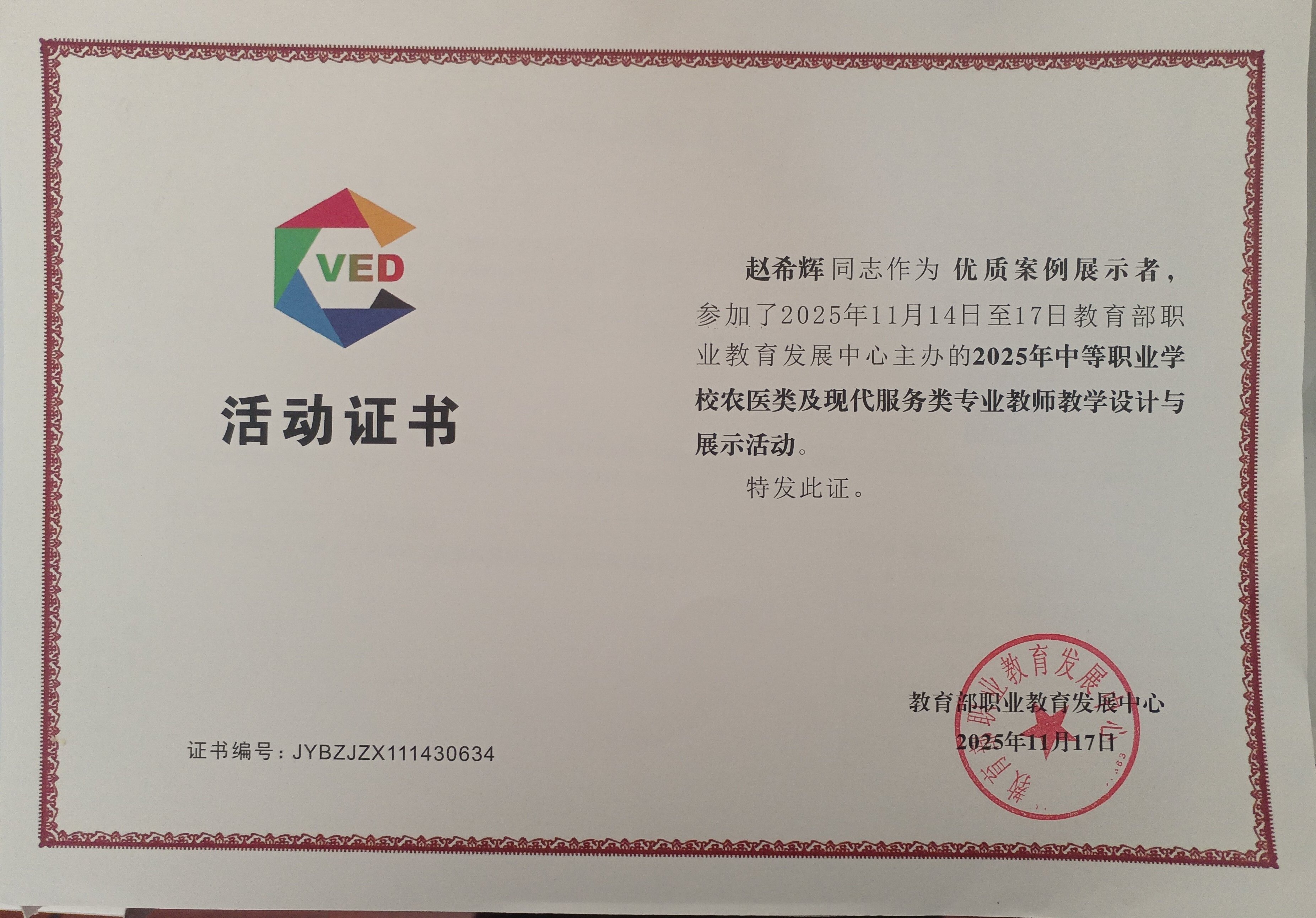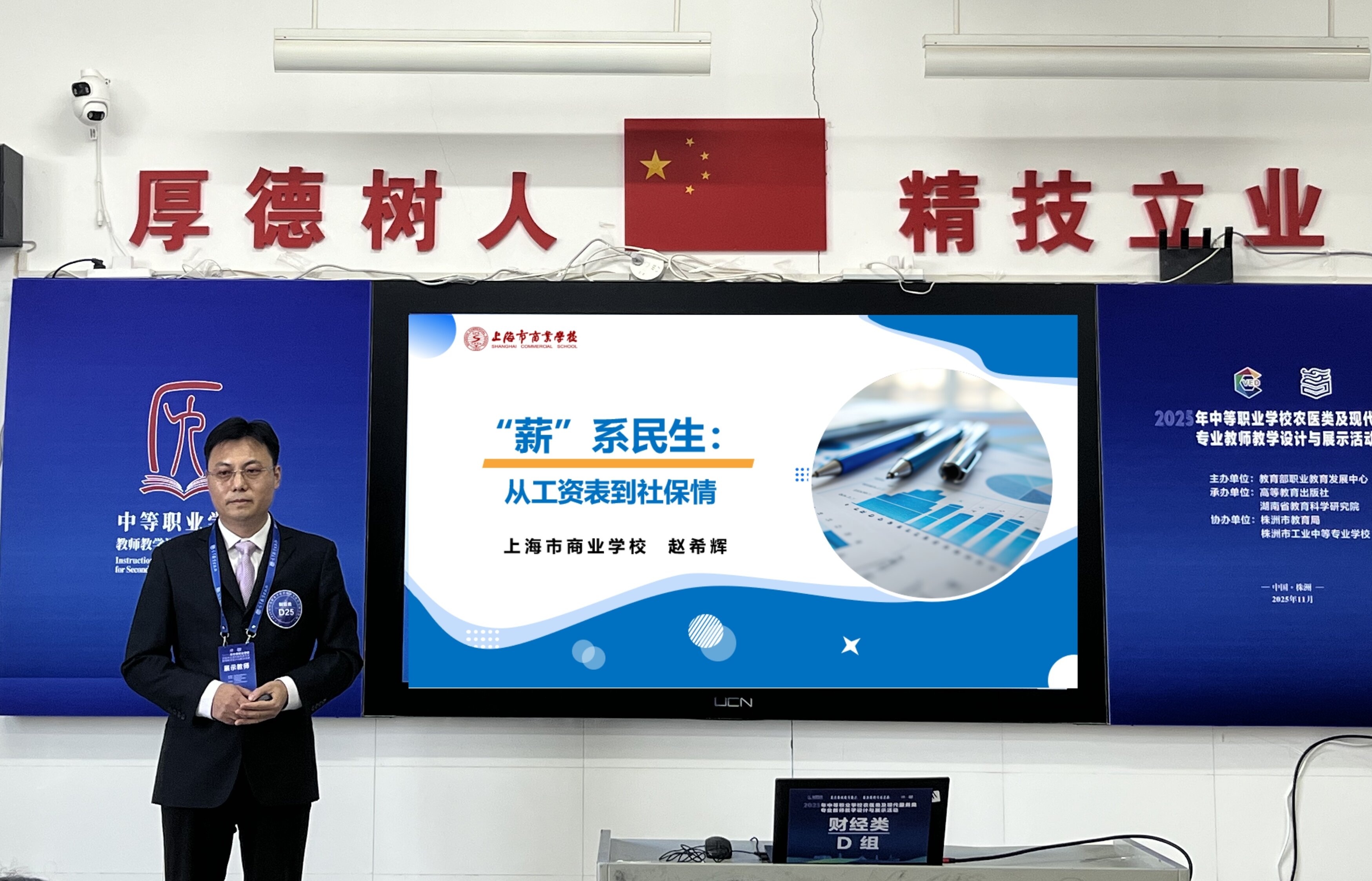 2025年11月14—17日,由教育部职业教育发展中心主办的2025年中等职业学校农医类及现代服务类专业教师教学设计与展示活动在湖南株洲举行,我校赵希辉老师代表学校参赛,并在财经组激烈角逐中获得佳绩,其教学设计作品“薪系民生—从工资表到社保情”荣获“优质教学设计”称号,教学设计方案将通过“智慧职教”网络平台面向全国展示推广。 这份荣誉的背后,是紧迫备赛中的全力以赴与团队协作的坚实支撑。本次参赛时间紧、任务重,从接到通知到提交所有材料只有10天的时间。接到参赛通知后,学校及教学部高度重视,在副校长金南辉的指导和财经商贸部主任胡海梅老师的带领下,第一时间成立了由赵希辉、胡海梅、李阳、付丽娜、柯伟玲等老师组成的备赛工作小组。小组内成员分工协作,从教学设计框架打磨、教学案例筛选到展示课件优化,各位老师积极建言献策、群策群力。金校长也多次关心备赛进展,为团队解决实际困难,给予全力支持。