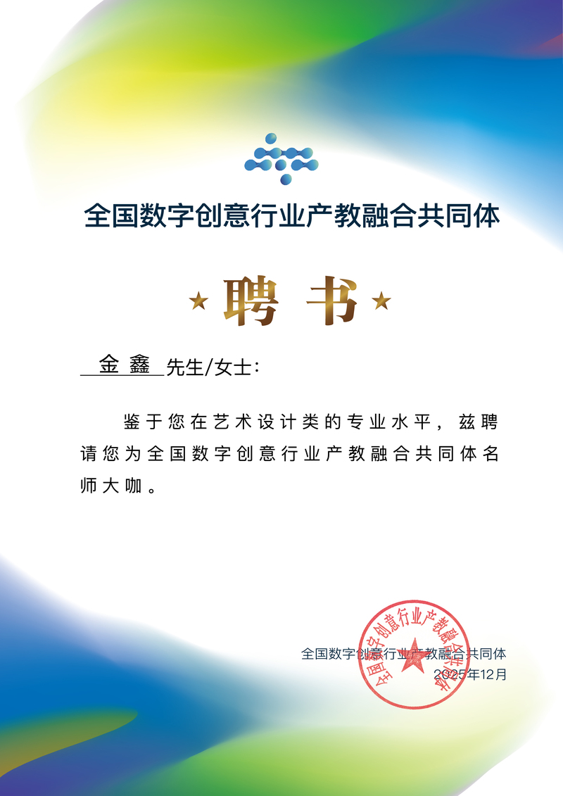 据悉,全国数字创意行业产教融合共同体组建“名师大咖库”,核心宗旨是汇聚行业领军人才与教育界骨干专家,为数字创意领域的课程体系建设、优质教材开发、师资队伍研修、关键技术攻关及行业标准研制等工作提供核心智力支撑。此次金鑫老师成功入选,正是对其长期深耕数字创意教育一线、兼具深厚教学积淀与突出行业服务能力的充分佐证。